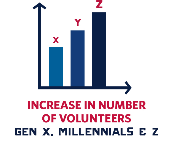 We will give our volunteers ongoing opportunities to get involved in meaningful, hands-on, mission-driven work — with a focus on attracting and inspiring the next generation of volunteers.
